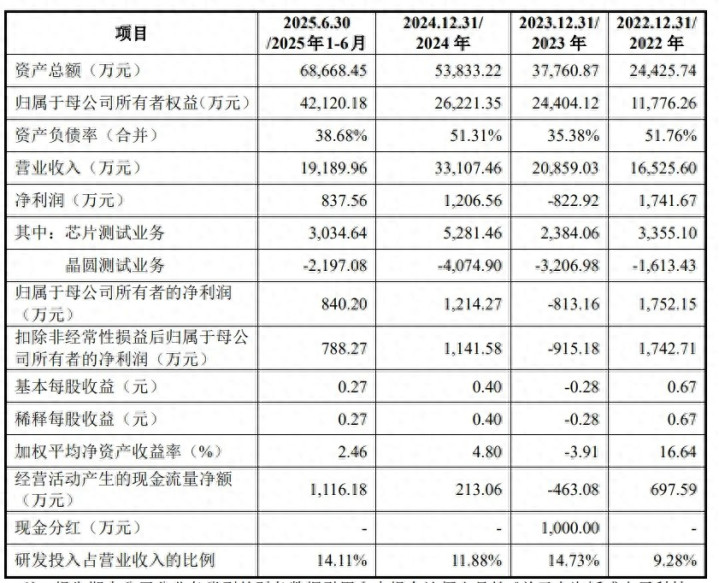 报告期内(2022年至2025年上半年),韬盛科技的营业收入分别为1.65亿元、2.09亿元、3.31亿元、1.92亿元;净利润分别为1741.67万元、-822.92万元、1206.56万元、837.56万元。