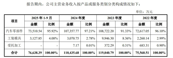 大昌科技主要从事汽车零部件及相关工装模具的研发、生产和销售,主要产品为车身结构件总成、底盘组件及相关工装模具。